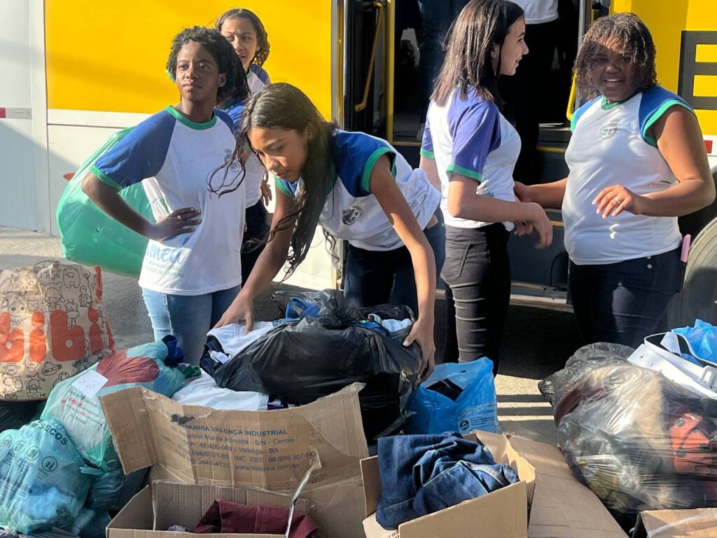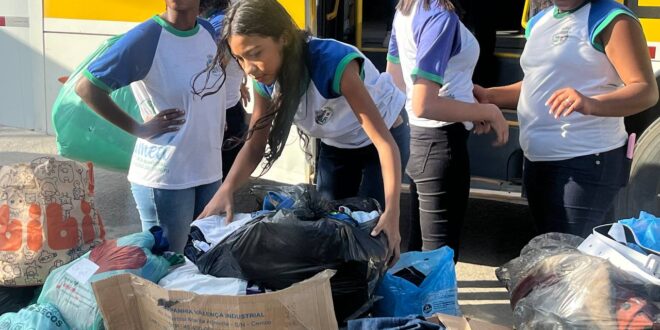 Peças arrecadadas durante o Arraiá solidário da escola foram levadas a abrigos da cidade pelos próprios estudantes