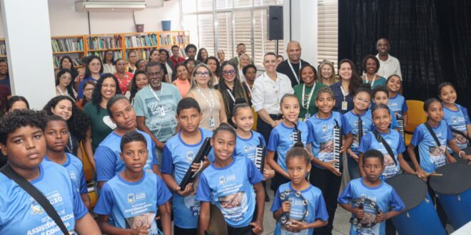 Crianças do Serviço de Convivência e Fortalecimento de Vínculos (SCFV) do Cras Bom Pastor, alunos da oficina de percussão, arrancaram aplausos dos participantes durante a execução da música Asa Branca de Luiz Gonzaga. Letícia Diniz também fez parte da composição da mesa de autoridades ao lado do secretário municipal de Assistência Social e Cidadania, Diogo Bastos, Letícia Diniz. Também estiveram ao lado a Secretária especial de Assistência Social e Cidadania, Letícia Guimarães; Secretária Especial de Combate à Fome, Marcelle da Silva; superintendente de Proteção Social Básica, Elenita Baranauska; superintendente de Proteção Social Especial, Graziela Mônica e a diretora de Média Complexidade da Semasc, Rosangela Pedra.